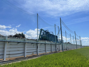 万が一、これが隣の田んぼに飛んでしまうと、農機具を傷つけてしまったり、